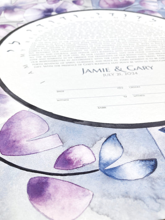 Reserved listing for Gary K. >< Watercolor painted custom Ketubah with printed text