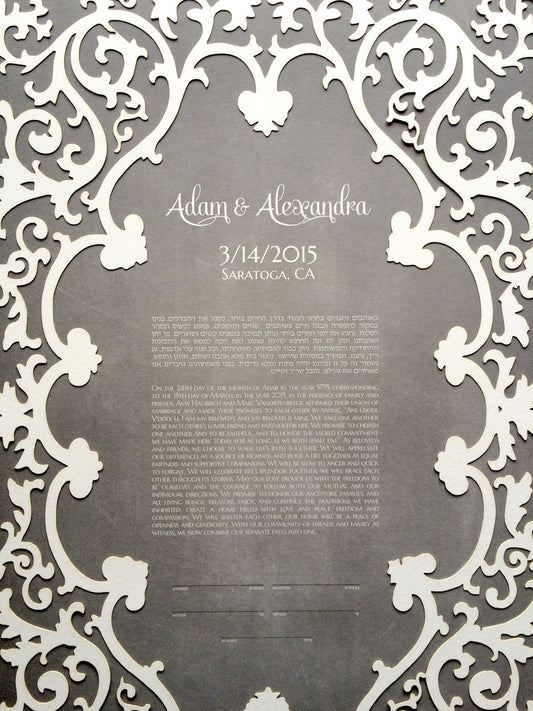 Romantic Frame Ketubah Papercut - Modern Ketubah Print with off white Papercut layer