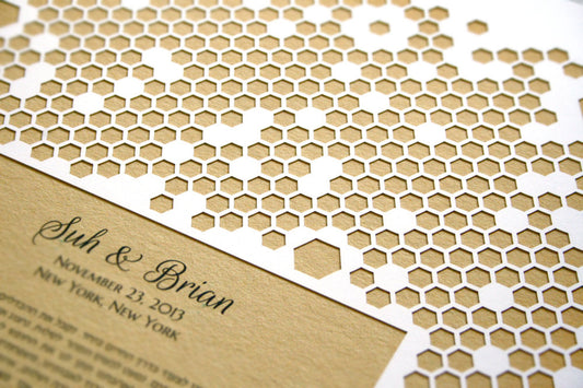 Papercut Ketubah Honeycombs, Modern abstract minimalist Ketubah Print with vintage book background