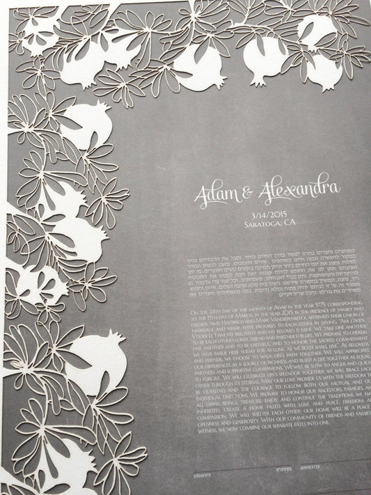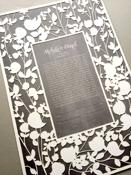 Pom Ketubah Papercut - Modern Ketubah Print with papercut layer - POMEGRANATE FRUIT KETUBAH
