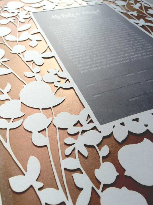 Papercut Ketubah Poppy Flowers - Modern Ketubah Print with papercut layer