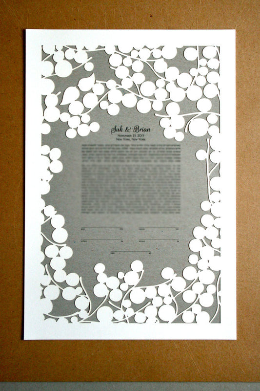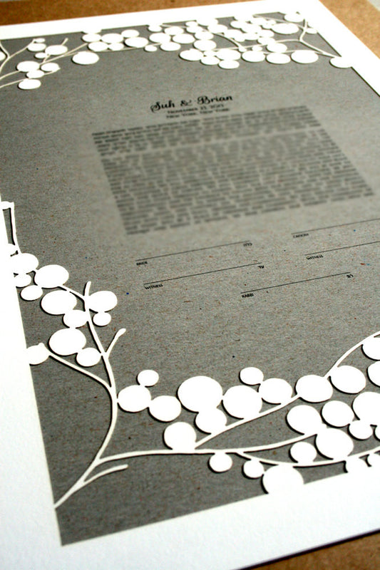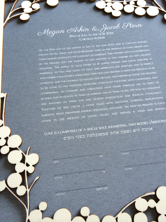 Papercut Ketubah Branches, Modern Ketubah Print with papercut layer