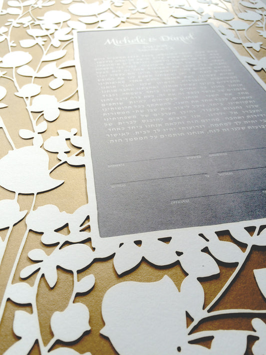 Ketubah Papercut - Three layer Ketubah - Papercut layer Metallic gold layer - BELOVED GARDEN
