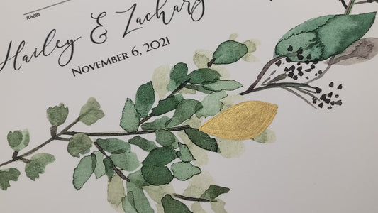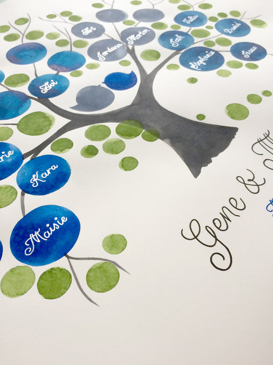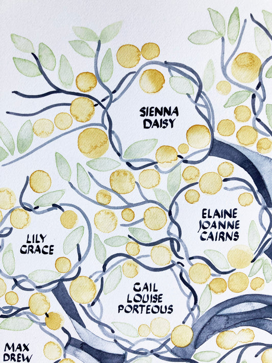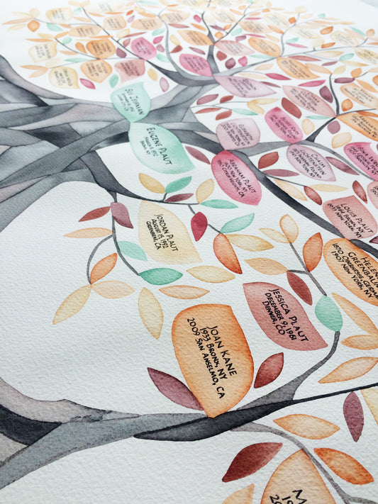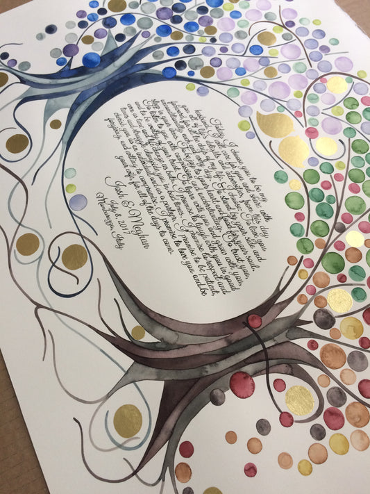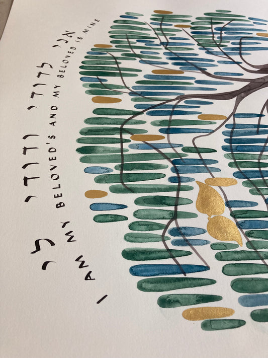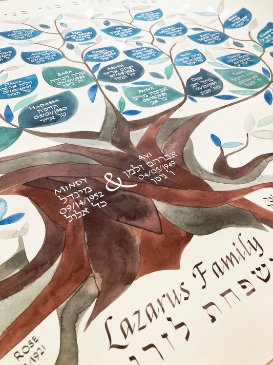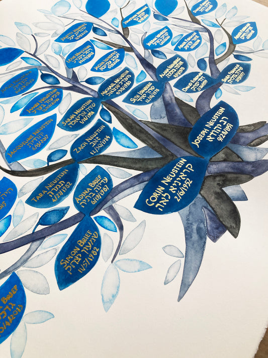 Custom Ancestry Tree watercolor <> Gold calligraphy Tree of life Jewish art
