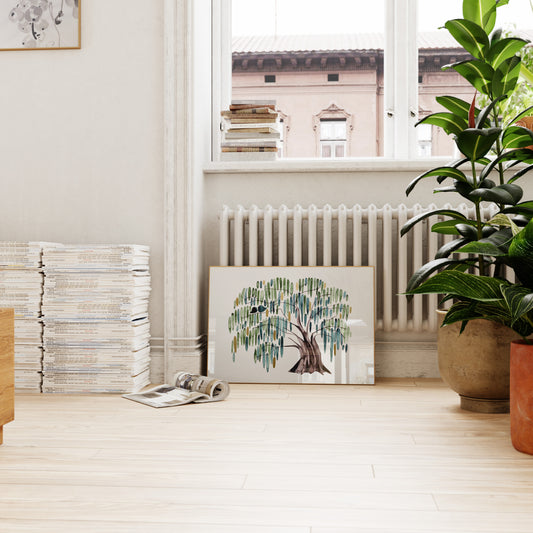 Gold leaf Weeping Willow tree blessing art with personalized names and poetic verse calligraphy