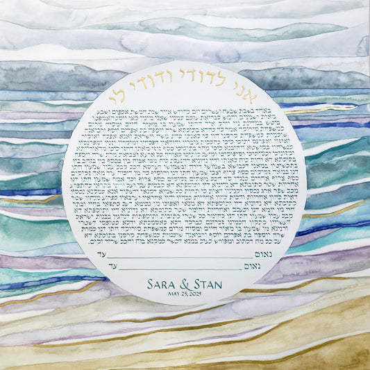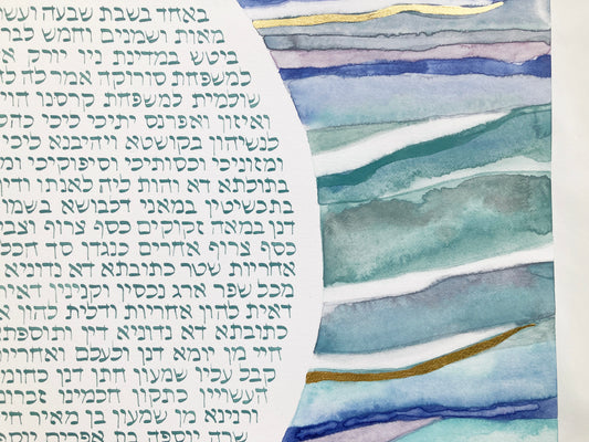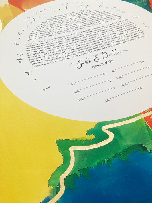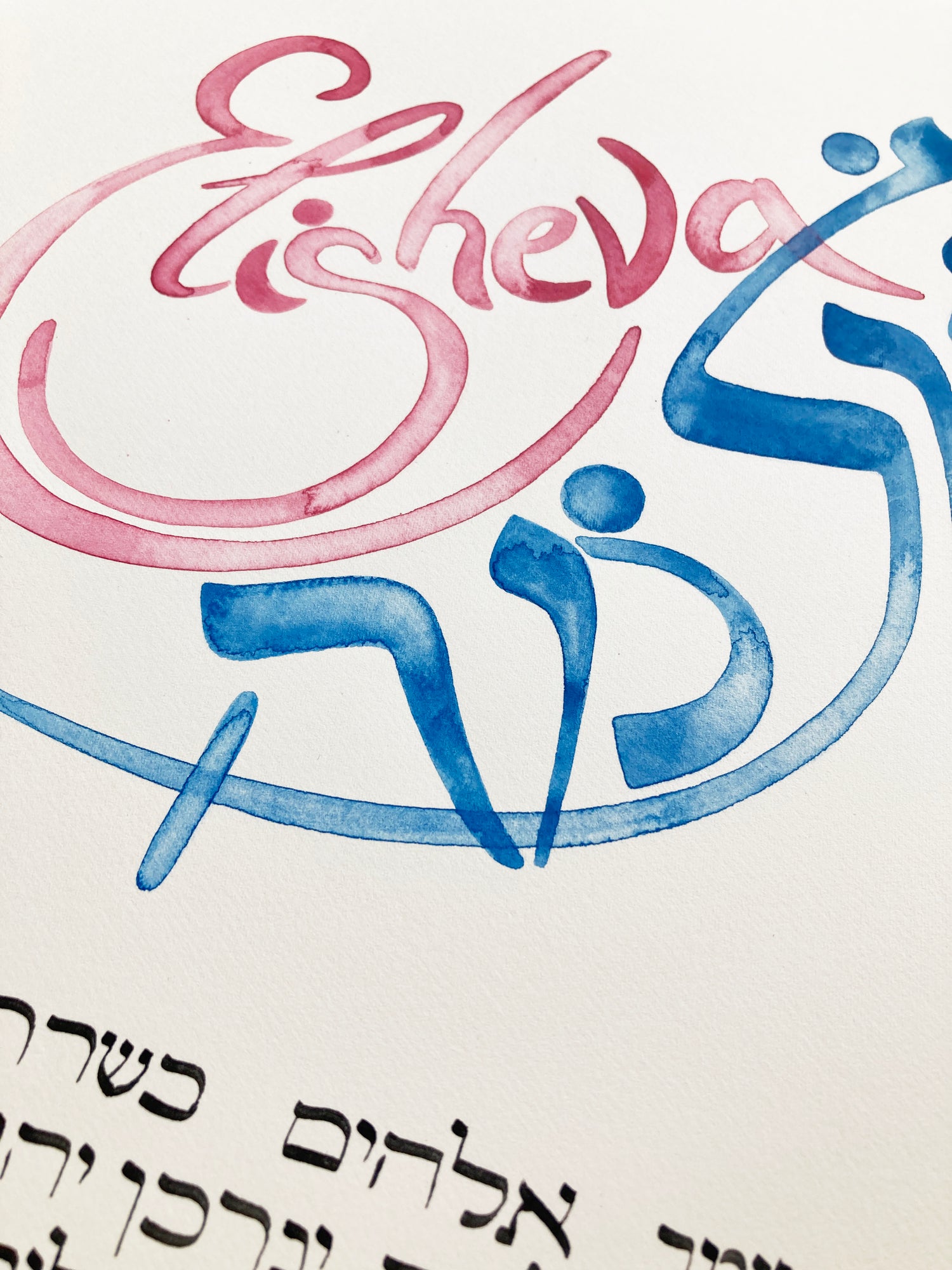 We are a worldwide destination for couples and families desiring splendid tailor-made ketubah and ceremonial announcements. Our designs are made to capture and celebrate the best moments at your Wedding, Bridal Shower, Anniversary, Family Reunion, Baby shower, Bar and Bat Mitzvah, Aufruf, Simcha, Parties and more. Heirlooms to be displayed as centerpieces in your home for generations. Watercolor and Calligraphy Tailor-made with love by Elena and Genu Berlo.