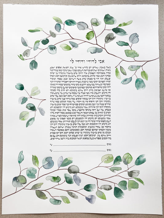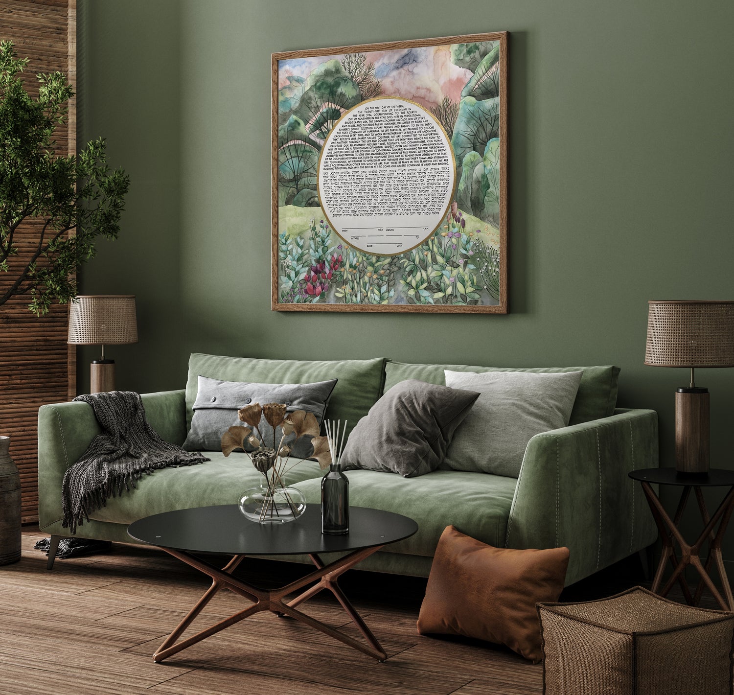 Botanical Ketubah Wedding Greenery Wreath ⤻ Modern Jewish Wedding