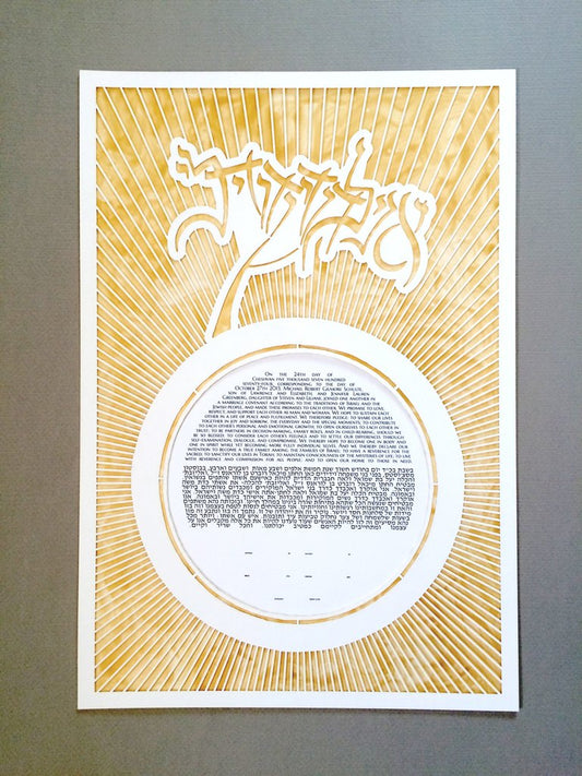 Introducing the Beloved Calligraphy Papercut Ketubah with Metallic Gold Layer