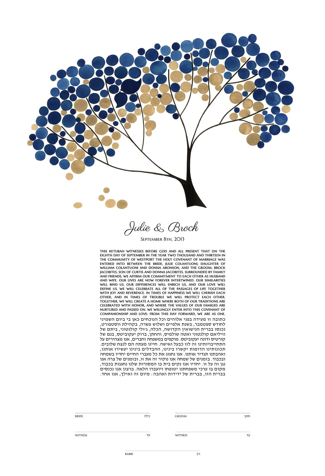 We are in love with our Ketubah and received so many compliments during our wedding. We also received our order so quickly and our interaction with this company was efficient and professional. Thank you again for everything!! I was amazed at how quickly our order came all the way from Romania to the US!