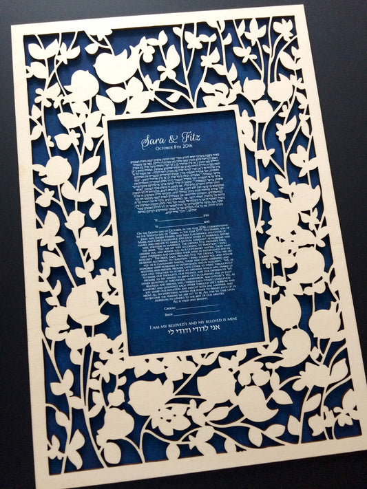 Ketubah wood - woodcut or papercut layered ketubah - BELOVED GARDEN