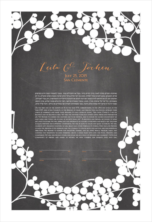 Woodcut Ketubah Light Branches with Love Birds alt, Modern abstract minimalist Ketubah Print on Kraft paper background