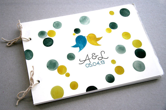 Custom Wedding Guest Book Album with Love Birds, Modern minimalist guestbook album with watercolor painted hardcovers