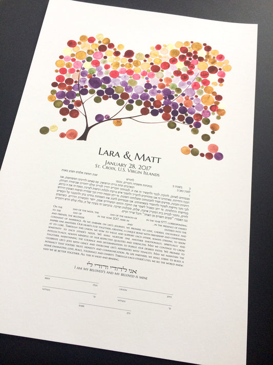 Gold Ketubah and Painted Album Matching Set - Tree of Life Modern Ketubah art