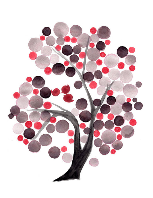 GRAY PINK TREE watercolor art print