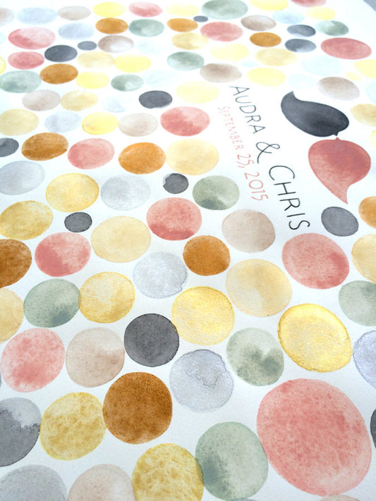Gold Wedding Watercolor Guest Book - GOLD PENNY TILES - 150 guest signatures - painted wedding gift
