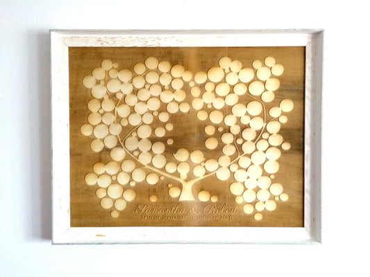 Engraved Wood Background Painted Guest Book - 150 signature spots - poplar wood finish