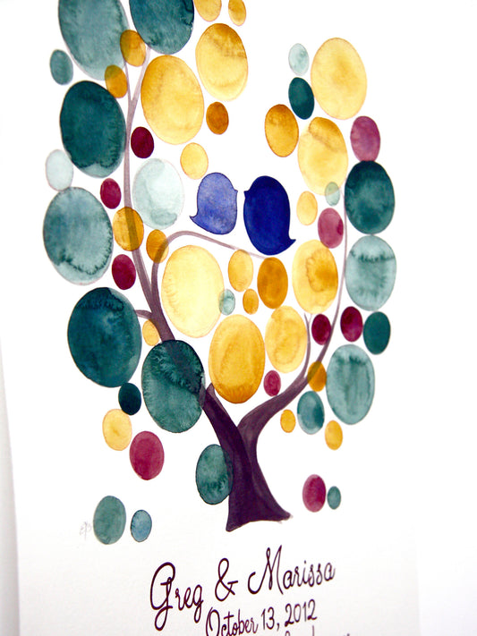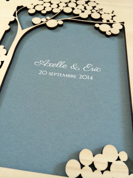 Custom Woodcut Wedding Guest Book Album Tree of Life with Love Birds, Modern abstract minimalist anniversary guestbook with woodcut covers