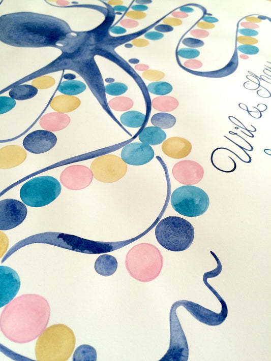 Baby shower Guest Book Alternative print - watercolor gift - SQUID