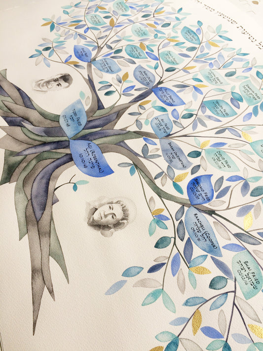 Reserved listing for Trevor C. - Custom Ancestry Tree watercolor painting with family portraits