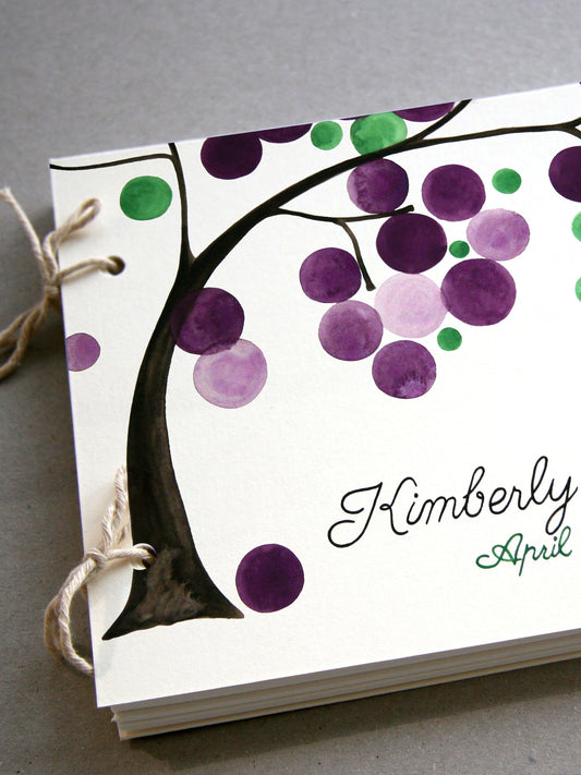 Custom Wedding Guest Book Album with Tree Branch, Modern minimalist guestbook album with watercolor painted hardcovers