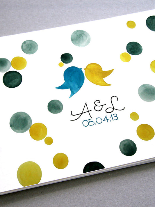 Custom Wedding Guest Book Album with Love Birds, Modern minimalist guestbook album with watercolor painted hardcovers