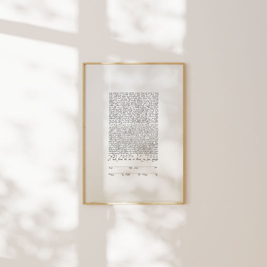 Gold Frame Illuminated Jewish Ketubah with custom calligraphy verse