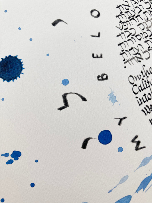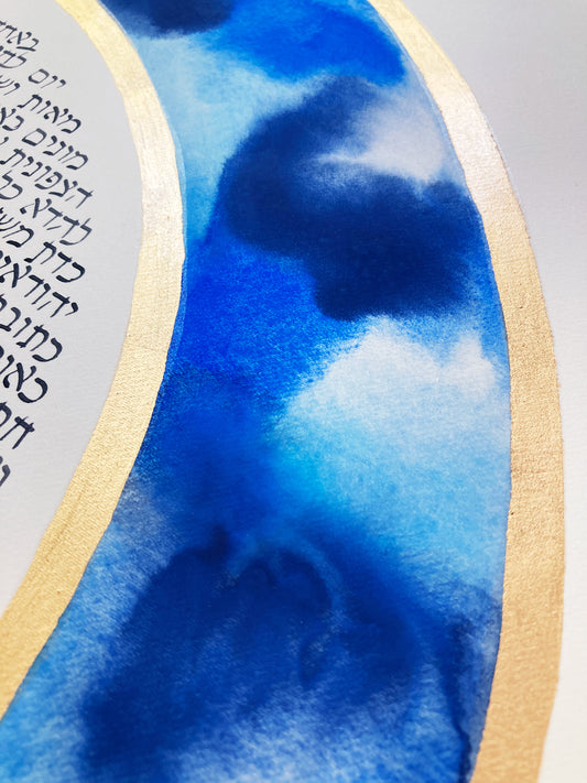 Modern blue custom Calligraphy painted Ketubah