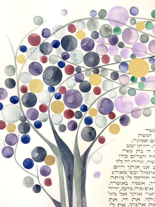 Painted Custom Ketubah - THE TREE BRANCHES - Watercolor handmade Calligraphy by Elena Berlo