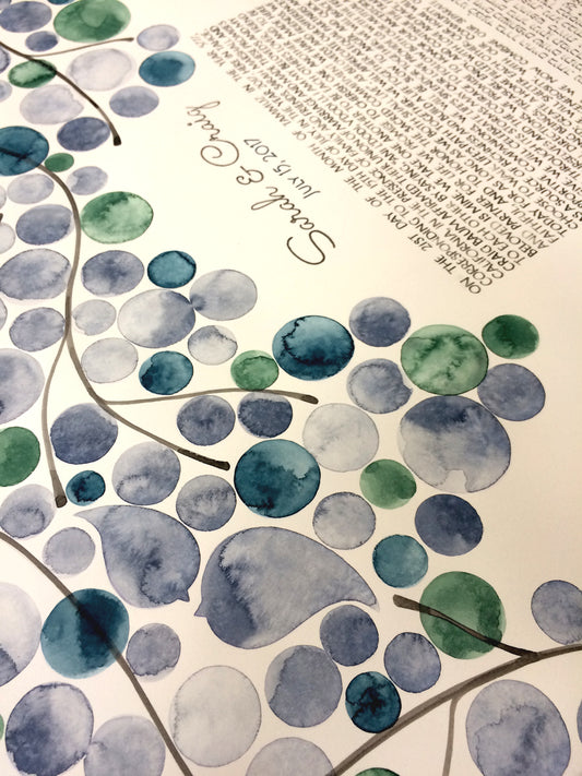 Greenery Wedding, Custom Ketubah, Artwork Commission, watercolor painting