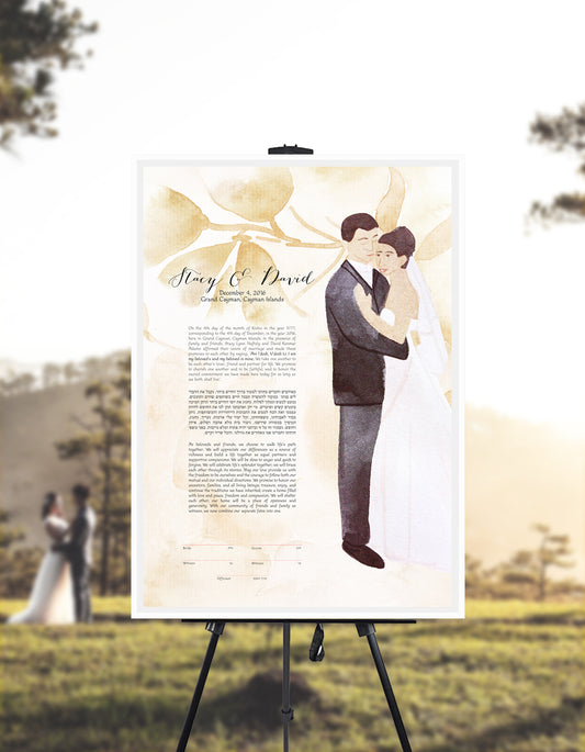 KETUBAH Custom Artwork Commission - Romantic Willow Tree Gold Leaf Embellished