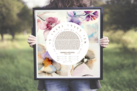 Custom wedding SET - Ketubah and matching Engagement artwork Gift > Modern manuscript Watercolor Ketubah - EDEN GARDEN