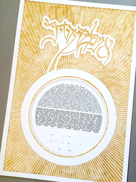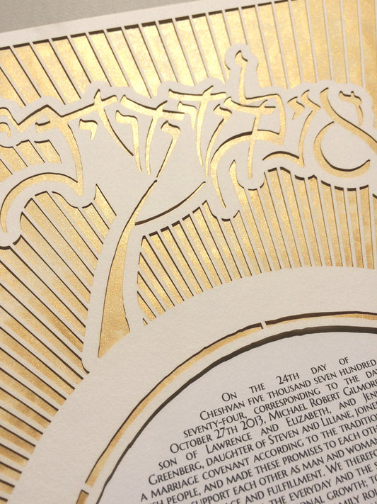 Metallic Gold Calligraphic Ketubah Papercut - Modern Ketubah Print with Papercut layer - MY BELOVED KETUBAH