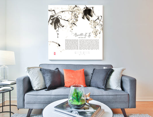 Japanese Ink Painting Ketubah > Botanical Sumi-e Grapevine