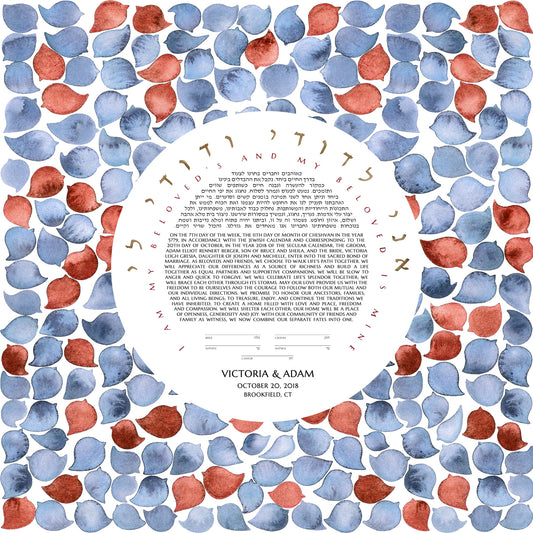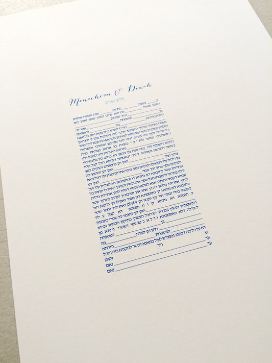 The Deep Blue Ketubah print - Personalized Jewish Wedding