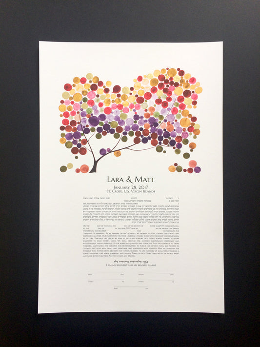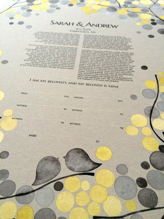 Personalized Ketubah Tree of Life and Love Birds - Spectrum
