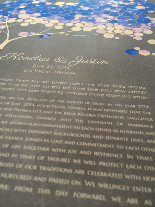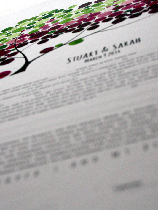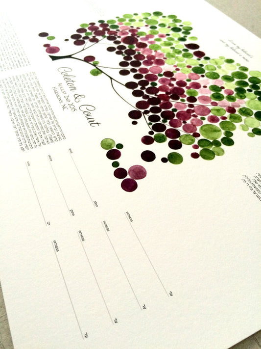 A OnceUponaPaper ketubah allows you to honor the ancient tradition of a ketubah in a slick and modern fashion. Our print ketubah is museum quality Giclée on natural white, matte, ultra smooth, 100% cotton rag, acid and lignin free archival paper using archival inks. Made to last over 200 years in original condition.