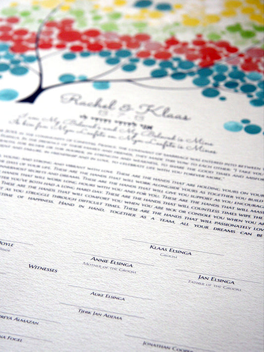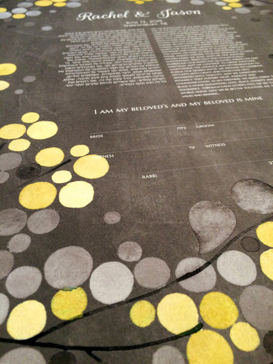 Personalized Modern Ketubah - Yellow Blush Tree of Life