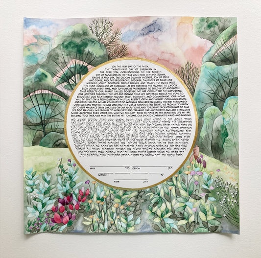 Custom engagement location painted Ketubah