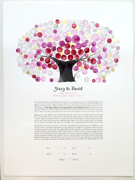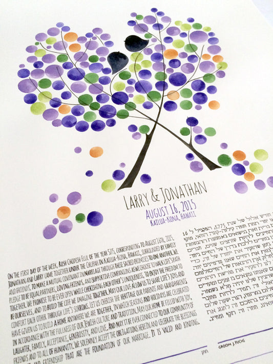 Custom Ketubah painting >< Reform, Interfaith and traditional Ketubah texts