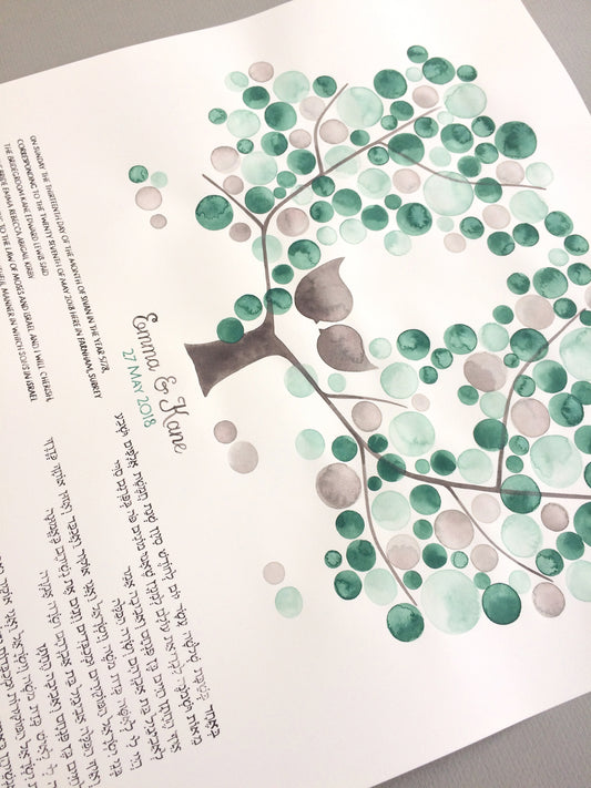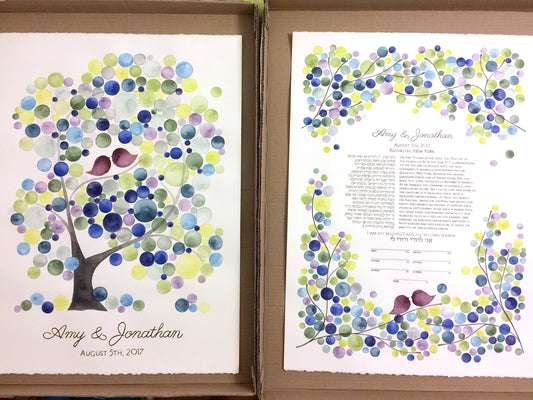 Hand painted Greenery Ketubah Watercolor Calligraphy