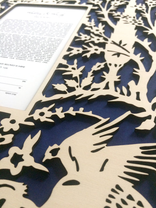 Metallic Copper custom painted Papercut on ↛ Watercolor Reform Ketubah