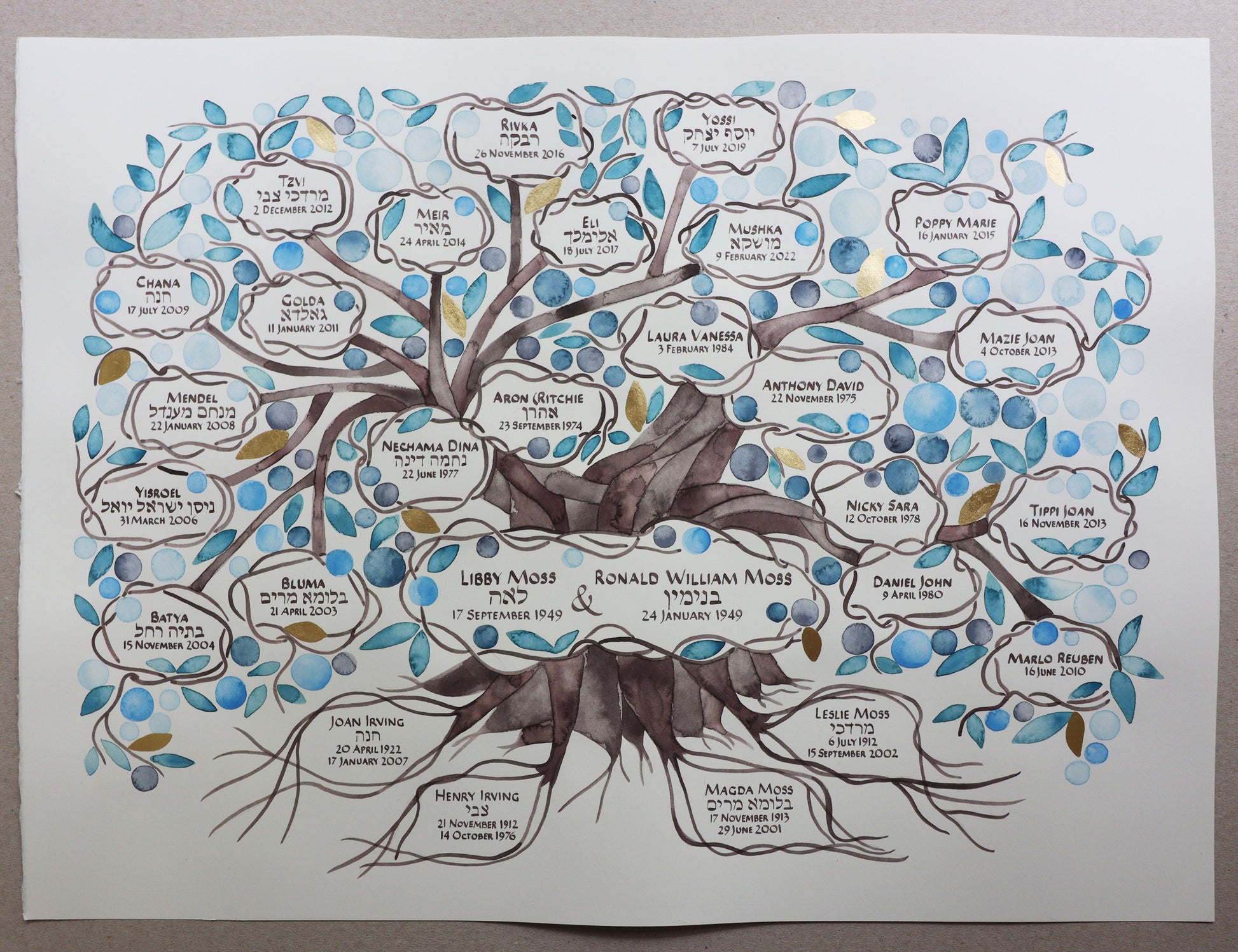 ♥ add-ons available on request: real gold leaf accents, additional information like names and dates in Hebrew or other languages