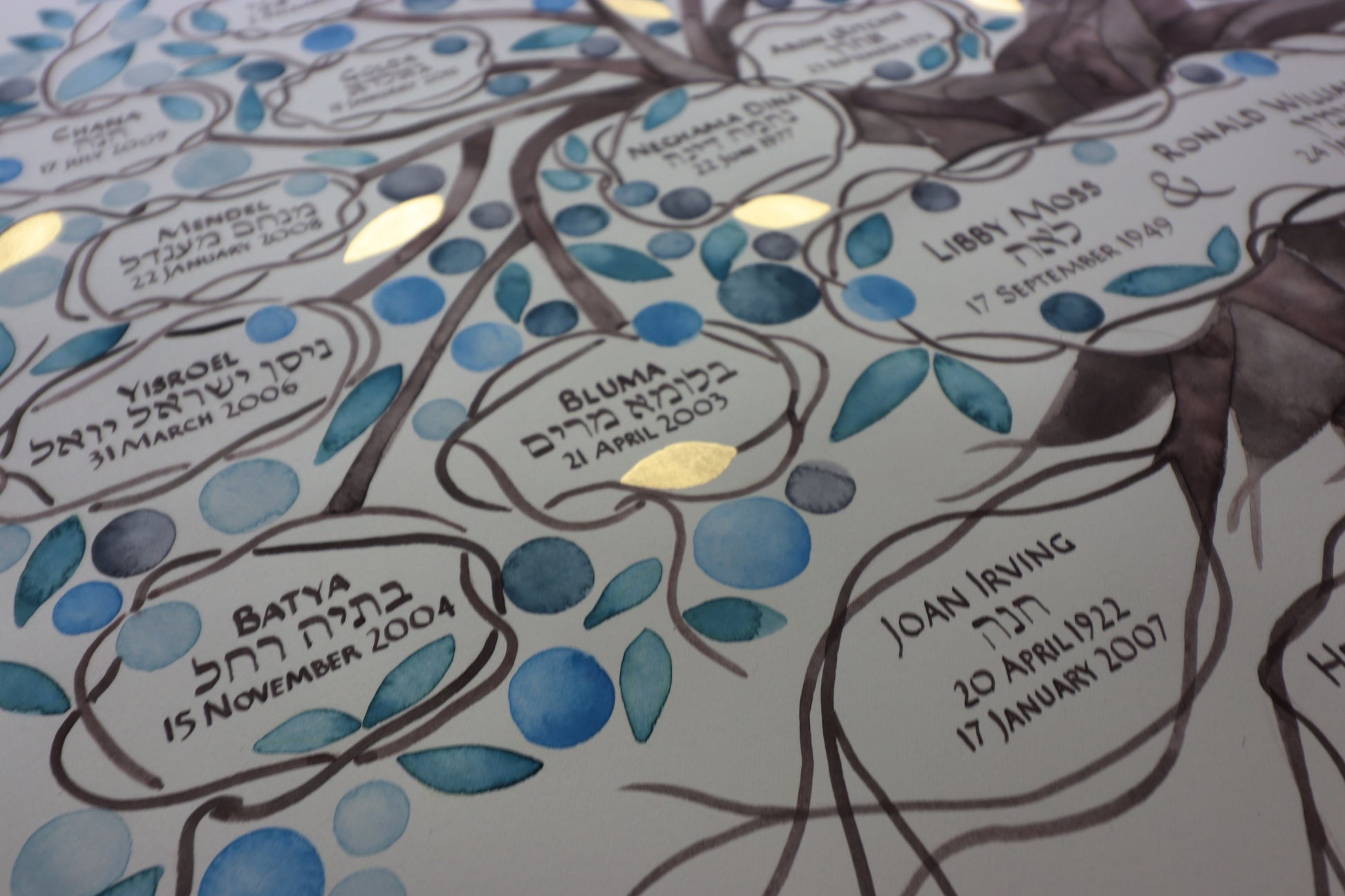 Our website WWW.ELENABERLO.COM has all of our family tree ordering and process information, including text and design options, order form, specific Jewish info, production and shipping important timeframes.