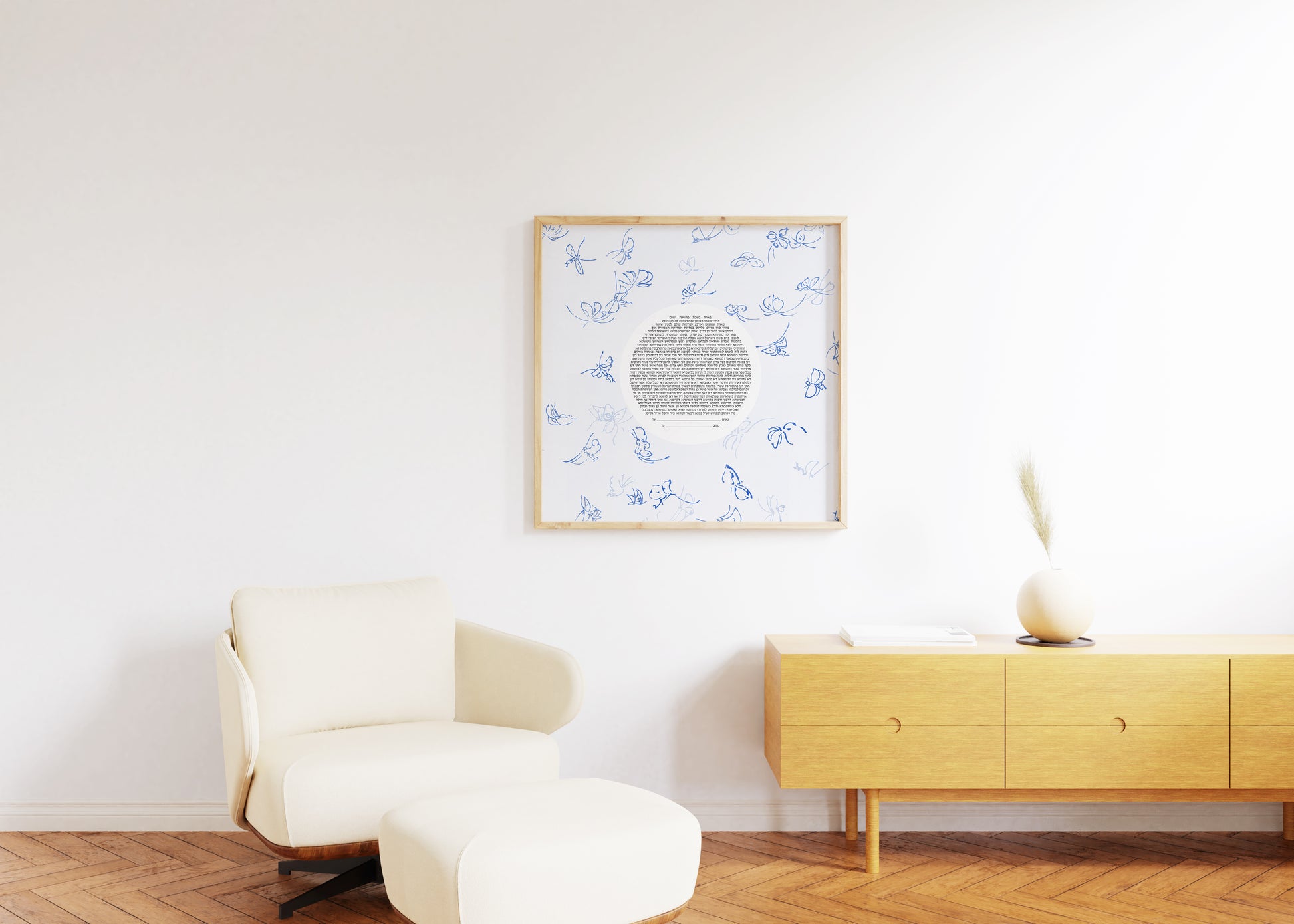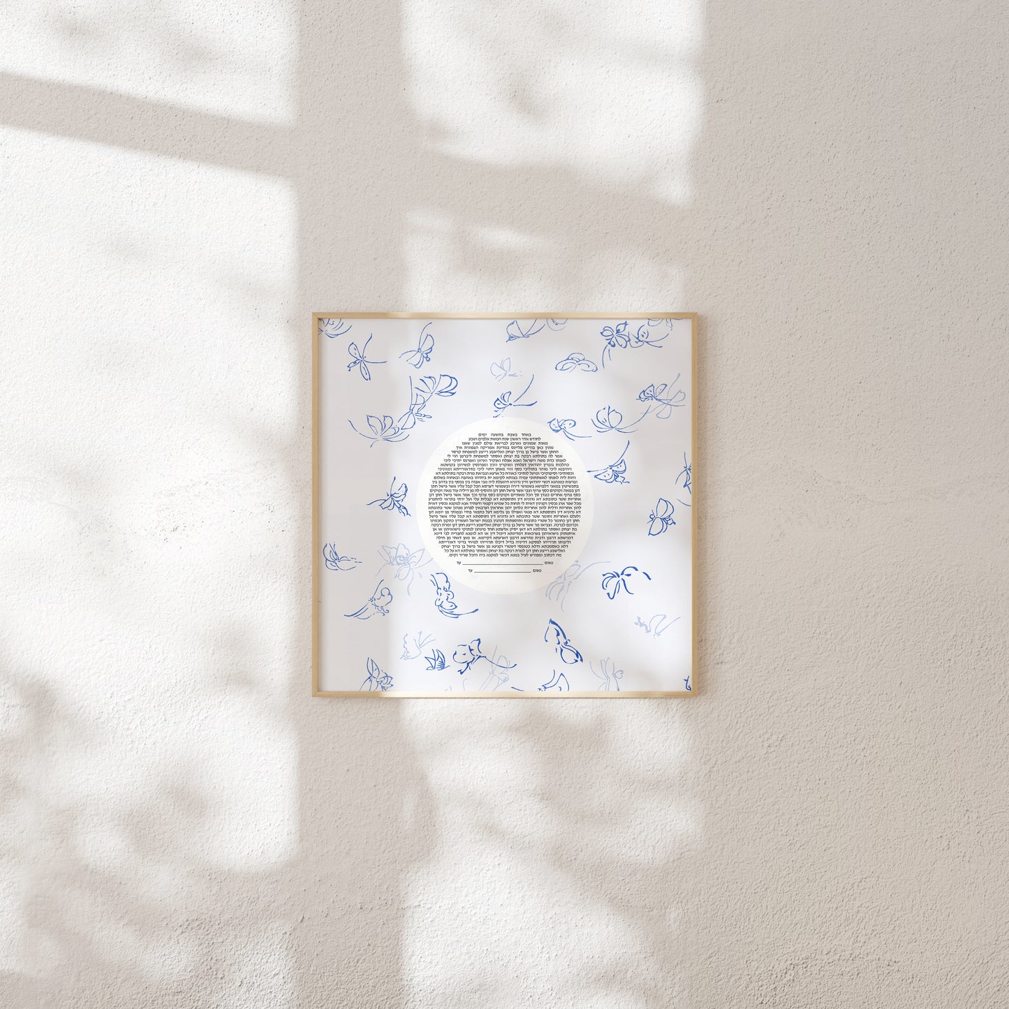 Featherily Butterfly Frenzy Ketubah [) Earth and Sky Blueprint Ketubah