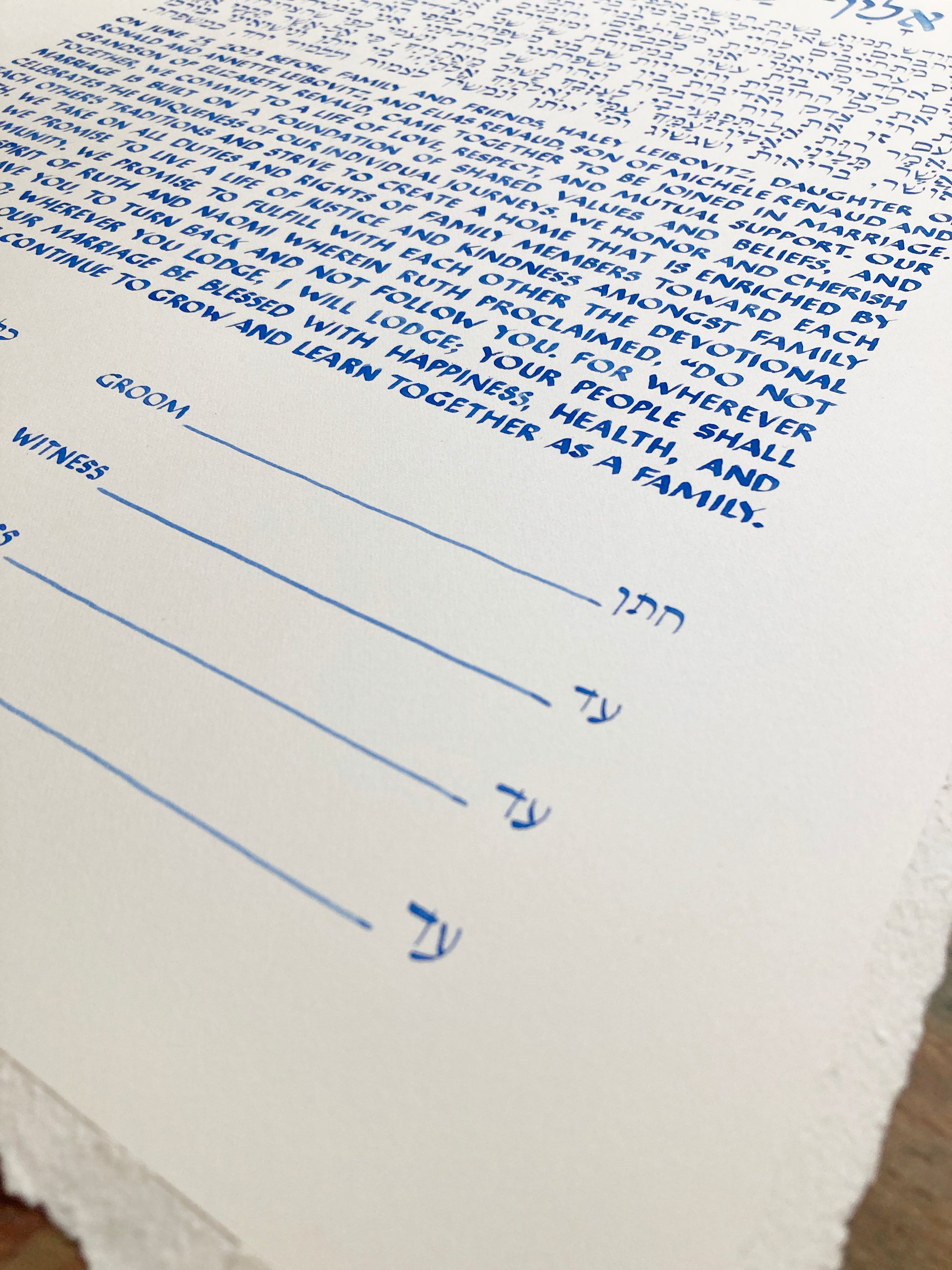 Our website WWW.ONCEUPONAPAPER.NET has all of our ketubah ordering and process information, including text and design options, order and rabbi forms, specific Jewish info, production and shipping important timeframes.