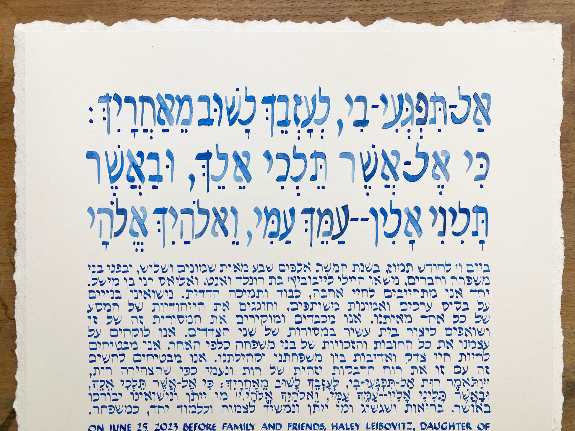> It's a big excitement to create your wedding Ketubah. Looking forward to working with you!