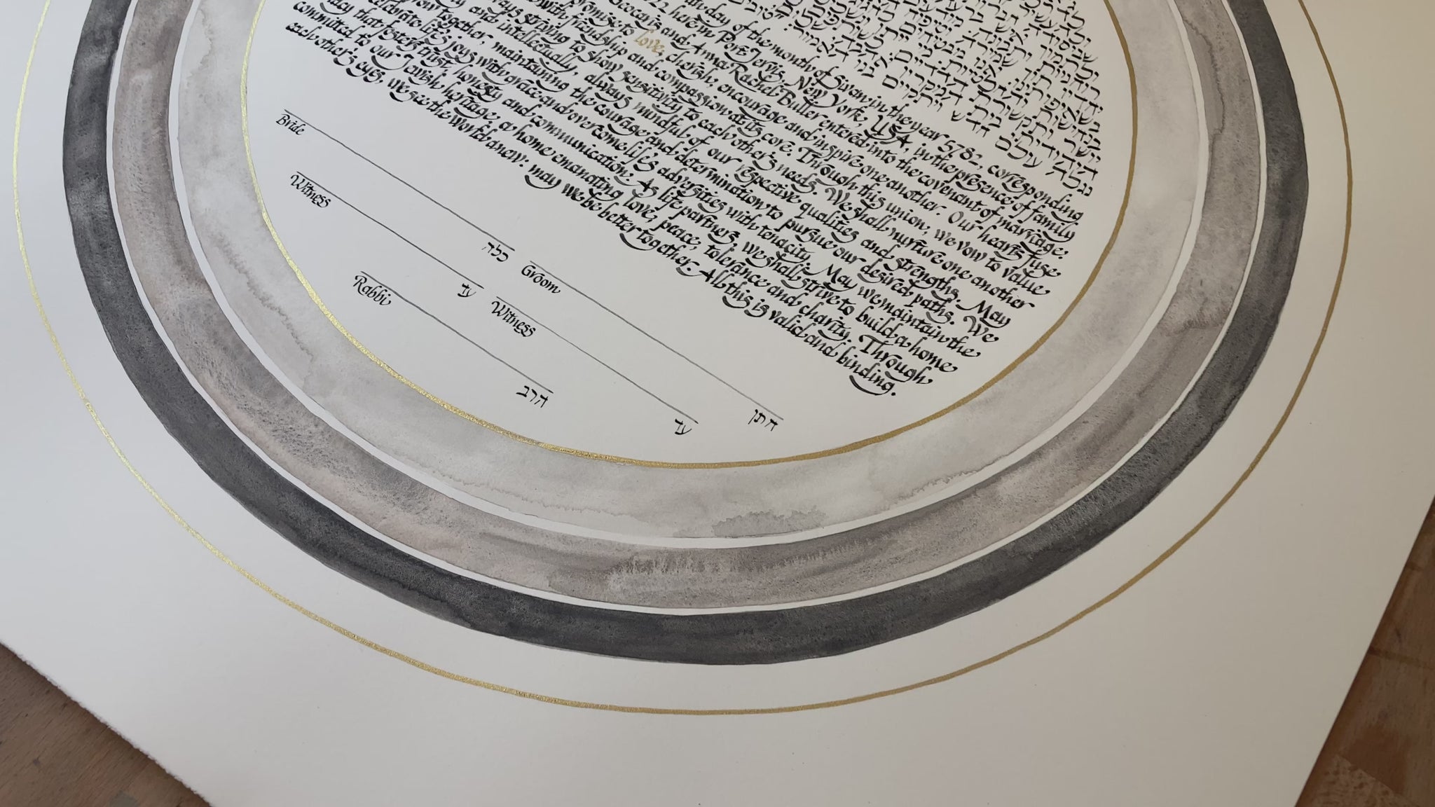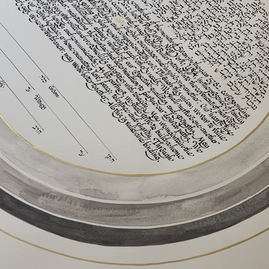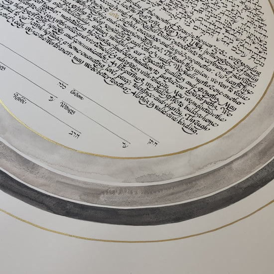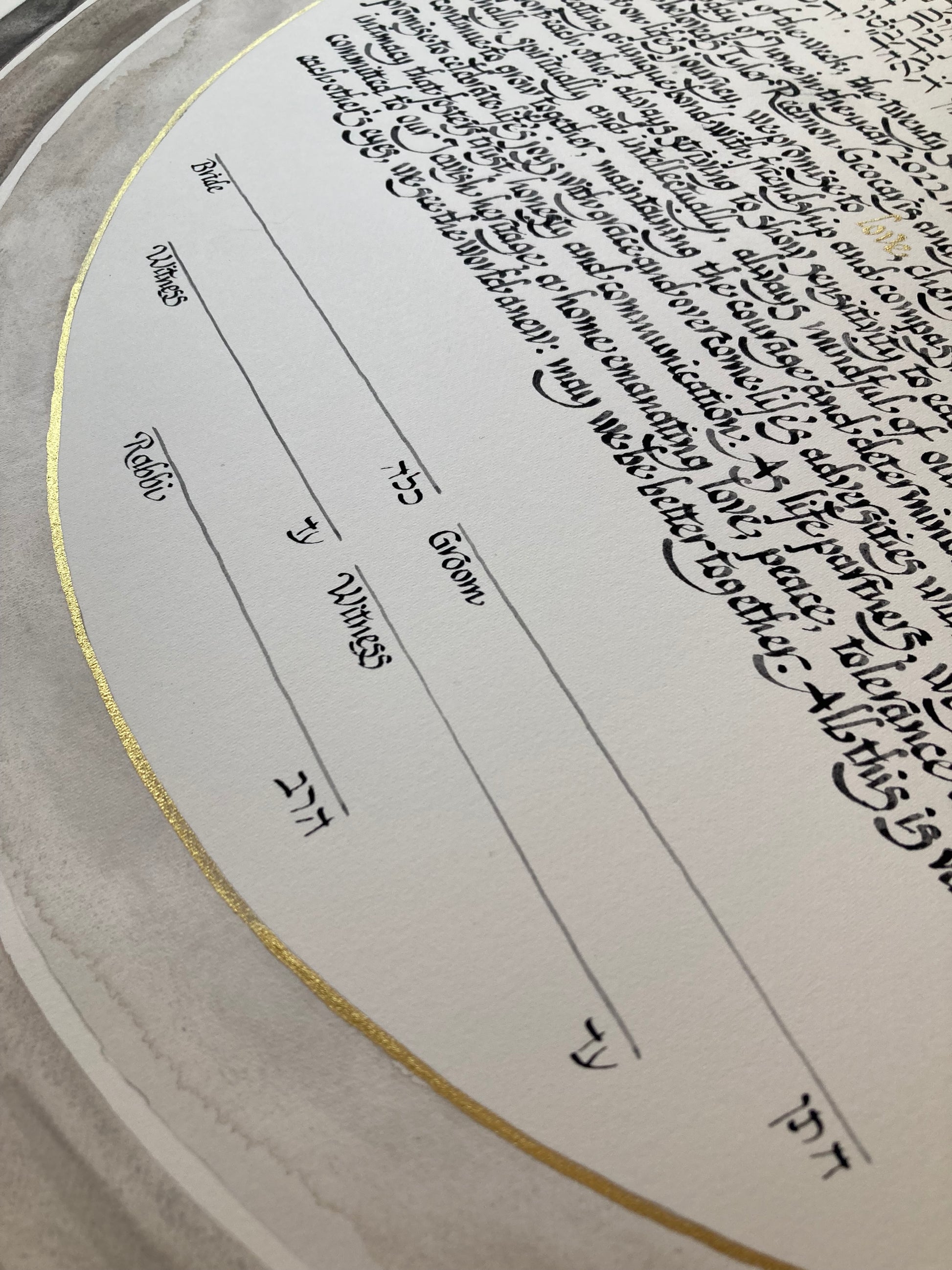 Single to Multi layered rings Gold Watercolor Custom Ketubah > printed or calligraphed texts